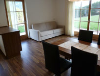 Unser größtes Apartment Santner ist nach dem Tiroler Alpinisten und Erstbesteiger der Santnerspitze am Schlern, Johann Santner (* 21. April 1840 in St. Jakob in Defereggen; † 21. Mai 1912 in Bozen), benannt und im Erdgeschoss gelegen. Auf 52 m² befinden sich eine Wohnküche mit großzügiger Küchenzeile, Esstisch und Schlafsofa, ein Schlafzimmer, ein Bad und ein Garten mit Panoramablick auf Puflatsch, Rosszähne und Schlern.